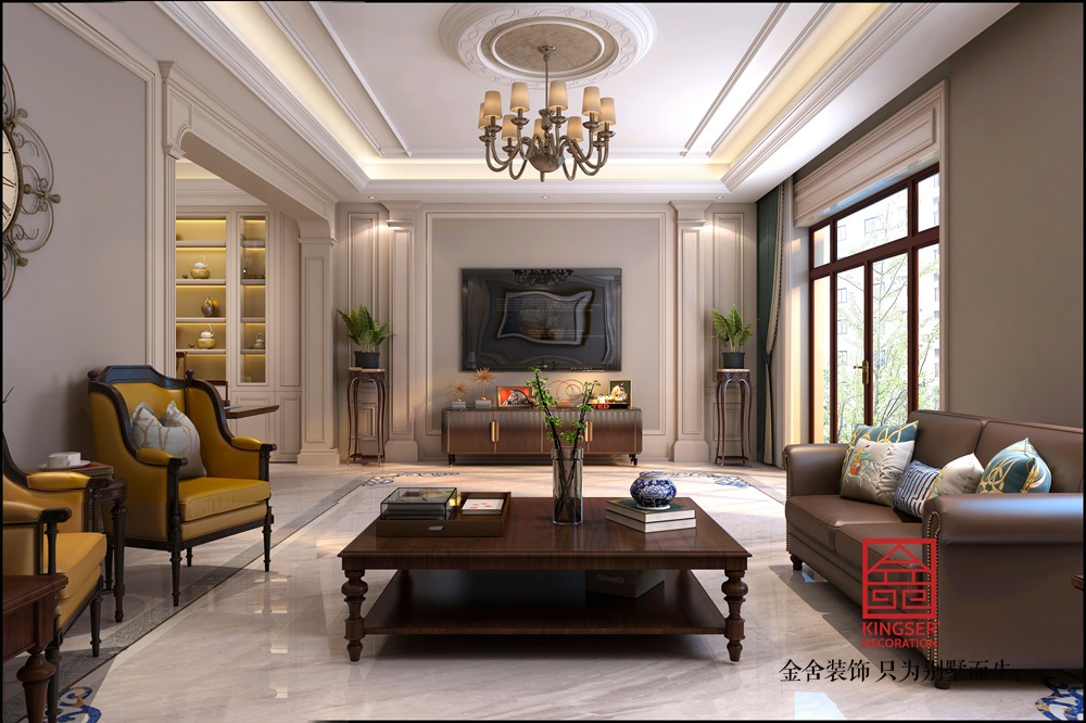 榮盛華府200平米美式風(fēng)格裝修案例實景