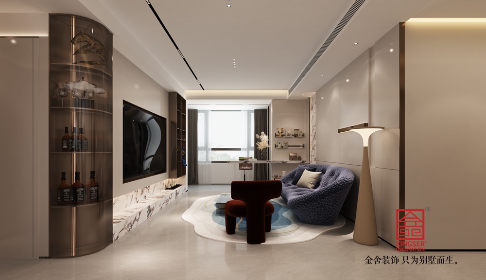 東南智匯城132平米現(xiàn)代輕奢風(fēng)格裝修-客廳