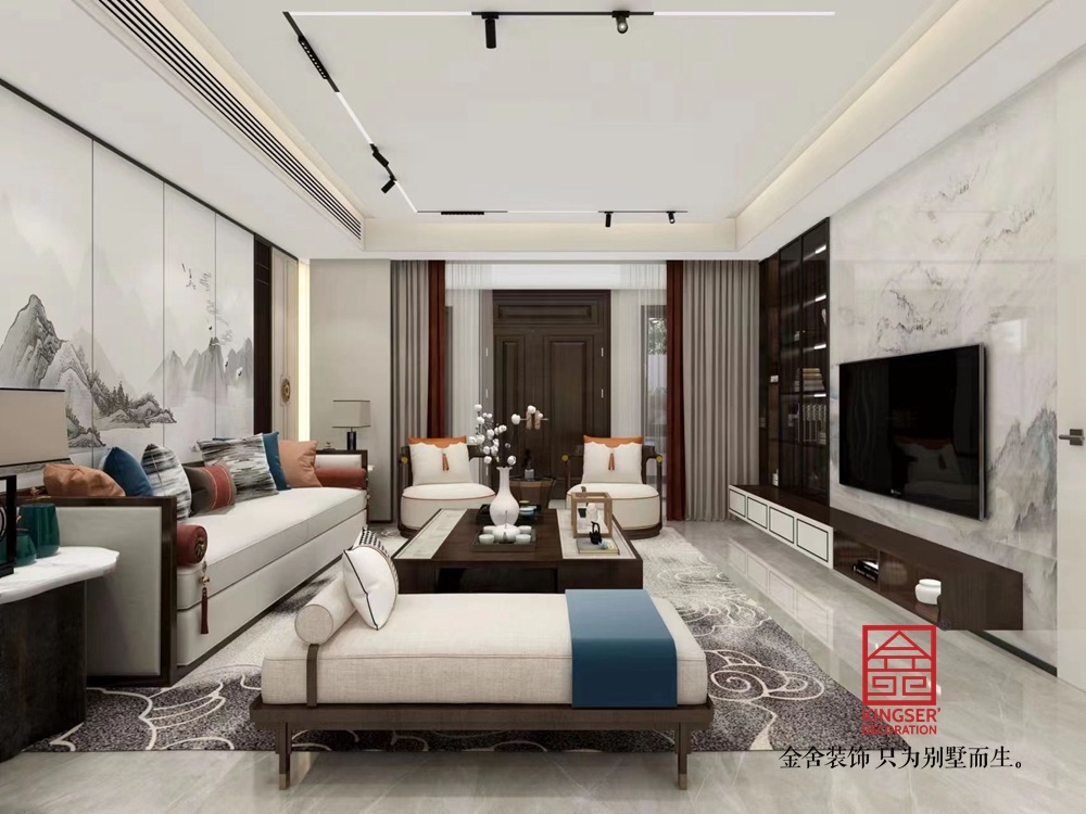 國仕山190平米新中式風(fēng)格裝修-客廳