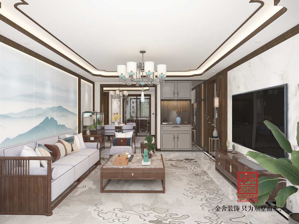 漢王府160平米新中式風(fēng)格裝修-客廳