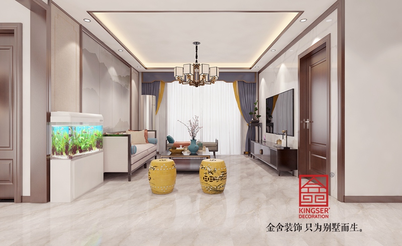 榮盛名邸120平米新中式裝修-客廳