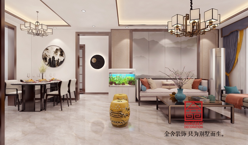 榮盛名邸120平米新中式裝修-客餐廳