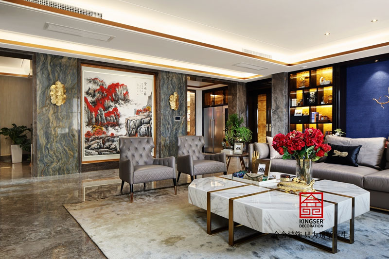 亨倫觀唐名邸139平新中式客廳設(shè)計(jì)實(shí)景作品