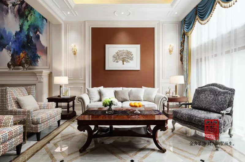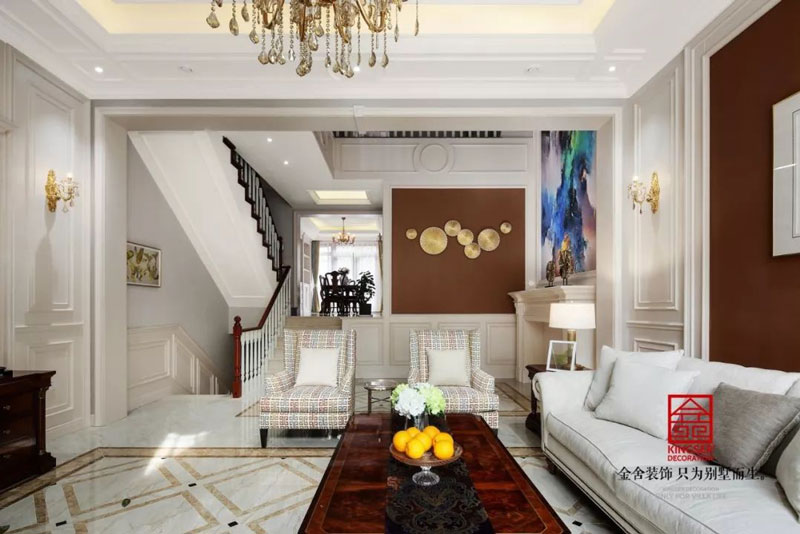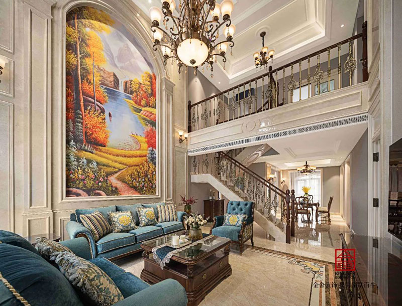 藍(lán)郡別墅裝修設(shè)計(jì)600㎡美式風(fēng)格客廳設(shè)計(jì)實(shí)景圖