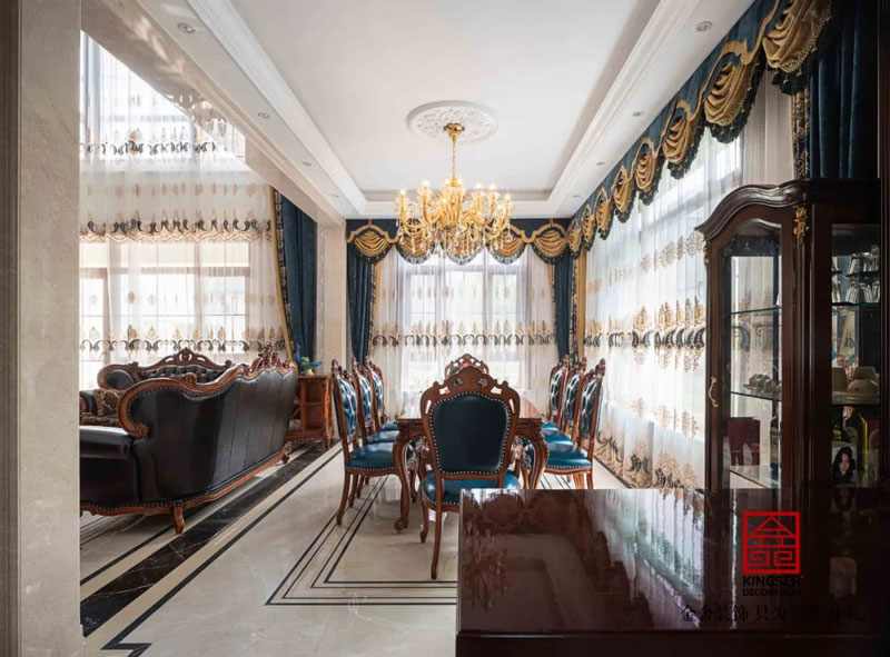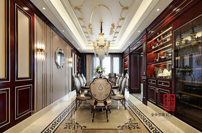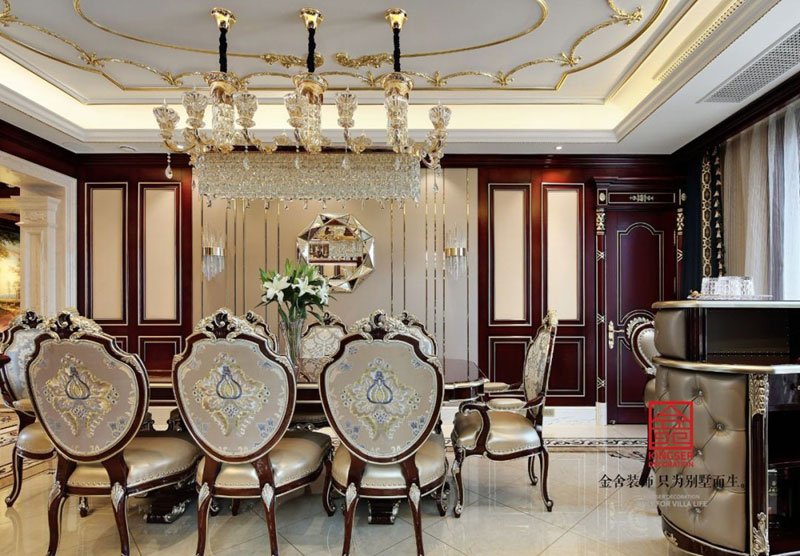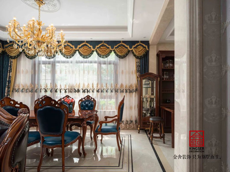 西山林語別墅裝修540㎡歐式風格餐廳設(shè)計實景案例