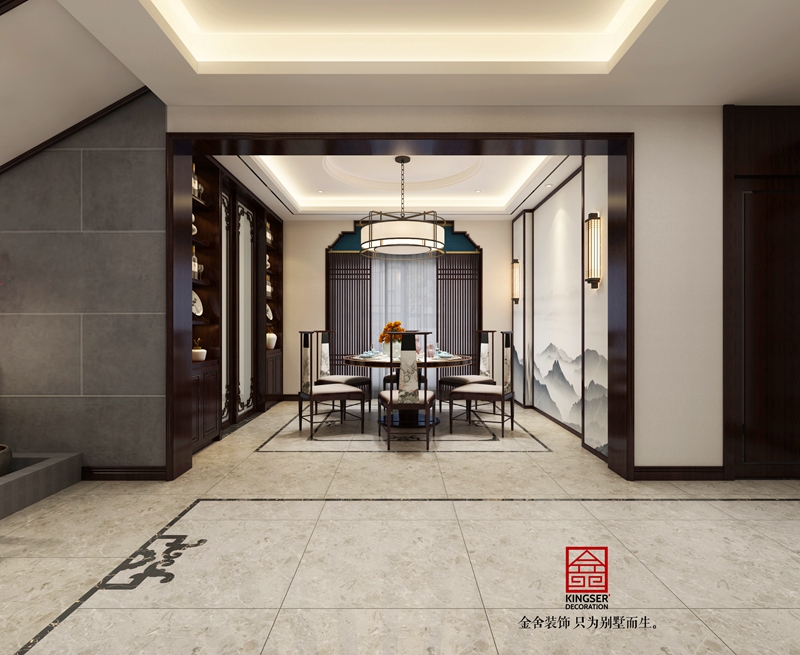 別墅裝修240平米新中式風格餐廳設(shè)計效果圖