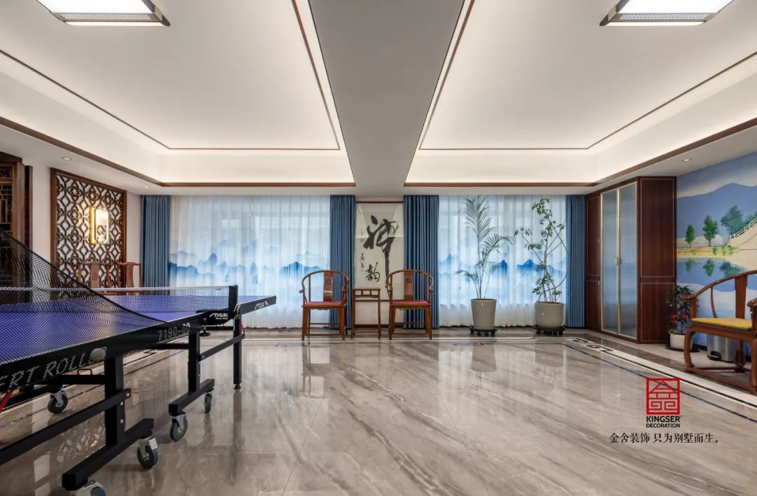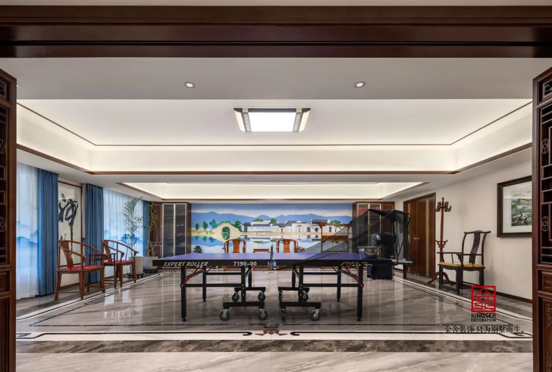 一個家居會所最不能缺少的就是娛樂的空間,乒乓球臺和影音室,晨沐朝霞、夜觀星斗,總有人想要脫開繁復(fù)的人事交集,體味中式元素之廣博。