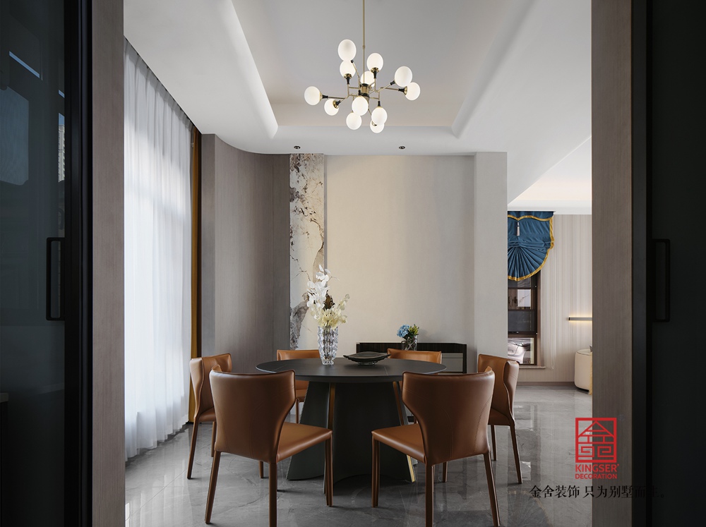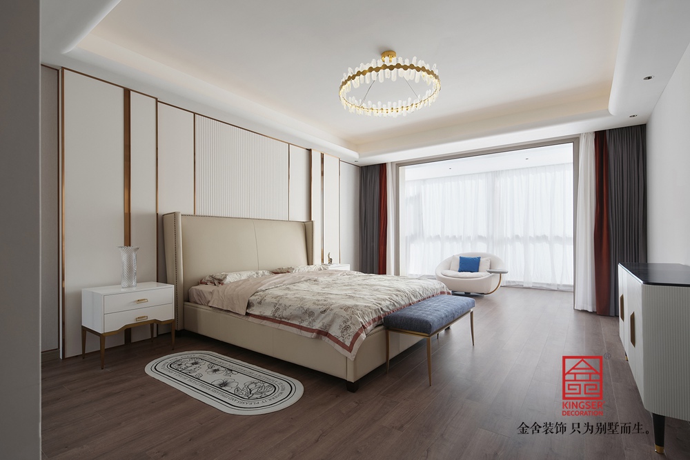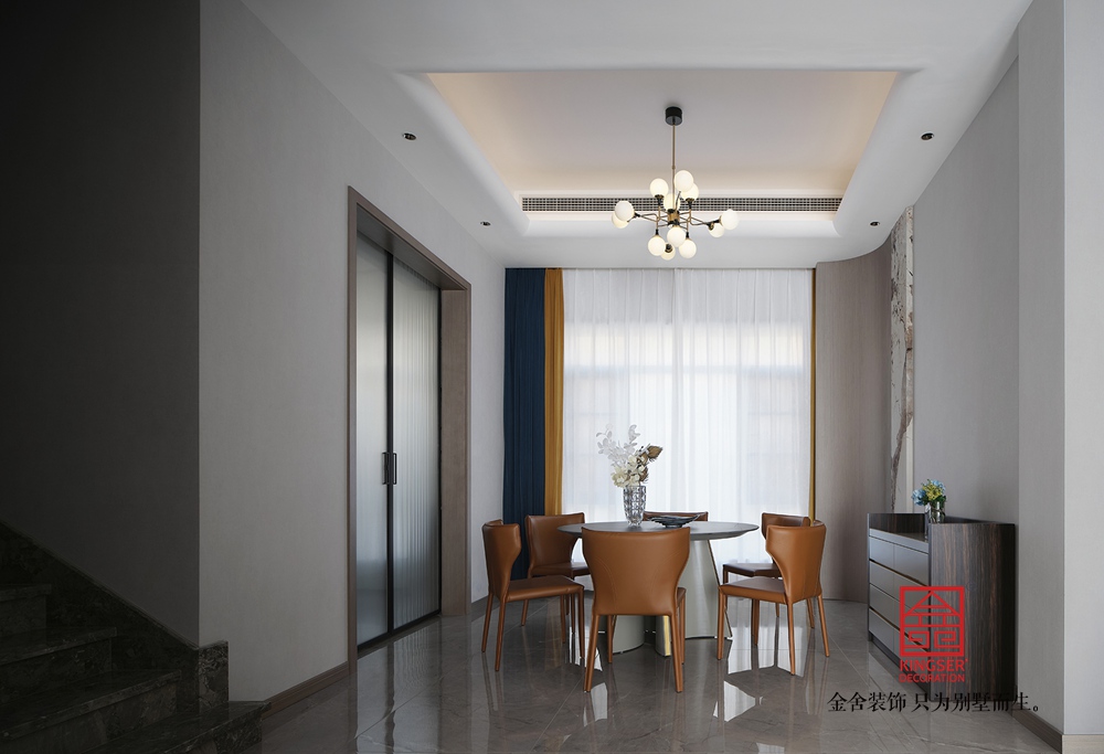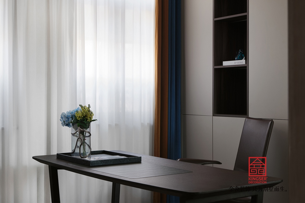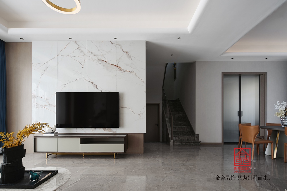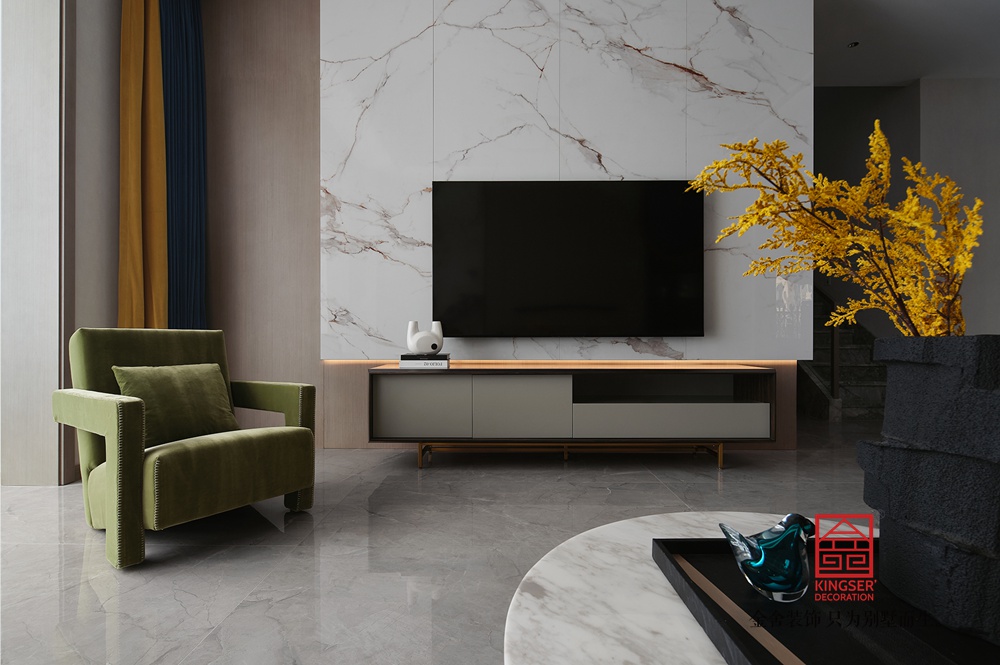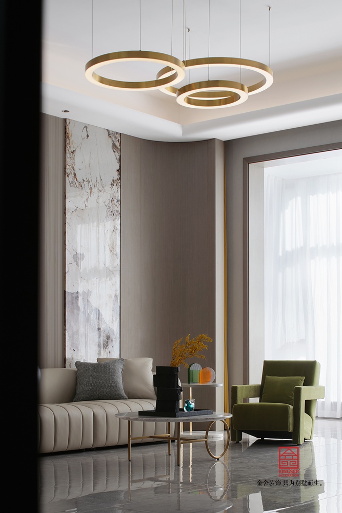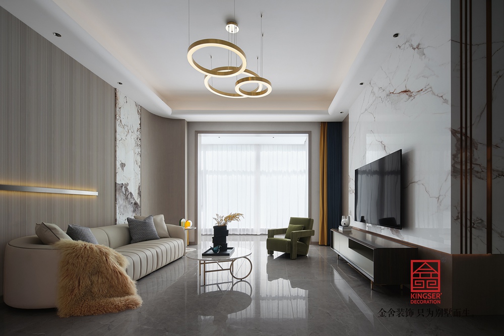 在設(shè)計上通過簡約的直線型、幾何型造型減少了視覺負(fù)擔(dān),也更符合現(xiàn)代審美,而在顏色的搭配上整體以米白、淺灰等低飽和度色系為主奠定柔和高級的基調(diào),同時在局部使用一些亮色來提亮,在避免單調(diào)的同時強(qiáng)化輕奢質(zhì)感,,詮釋了意式輕奢“簡約而不簡單,奢華卻不張揚”的風(fēng)格內(nèi)核,為居者打造了一個“舒適且有格調(diào)”的理想家。