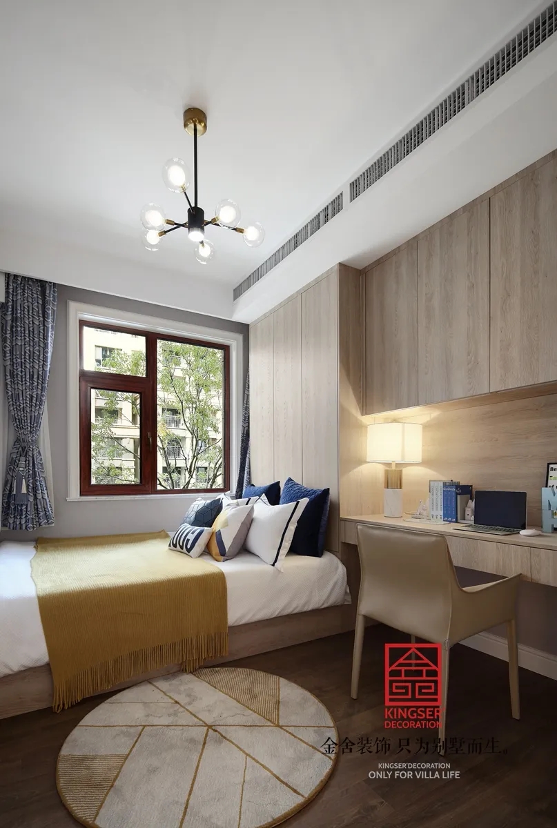 創(chuàng)意感十足的復(fù)古座椅點綴出家具的奢華,經(jīng)典與時尚兼具,紗幔一般的窗簾散發(fā)著溫馨的味道,窗簾以法蘭絨和紗織材質(zhì)構(gòu)成,著重色彩與肌理的把握符合整個空間的優(yōu)雅氣質(zhì)。