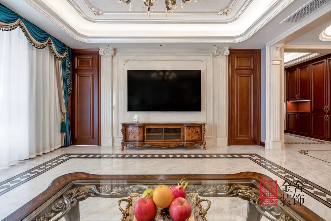 此案例為金舍裝飾-榮盛華府500平米歐式風(fēng)格裝修實(shí)景。歐式風(fēng)格,更像是一種多元化的思考方式,將懷古的浪漫情懷與現(xiàn)代人對生活的需求相結(jié)合,兼容華貴典雅與時尚現(xiàn)代,高雅而和諧是現(xiàn)代歐式的代名詞。歐洲文化豐富的藝術(shù)底蘊(yùn),開放、創(chuàng)新的設(shè)計(jì)思想及其尊貴的姿容展現(xiàn)在人們的眼前。