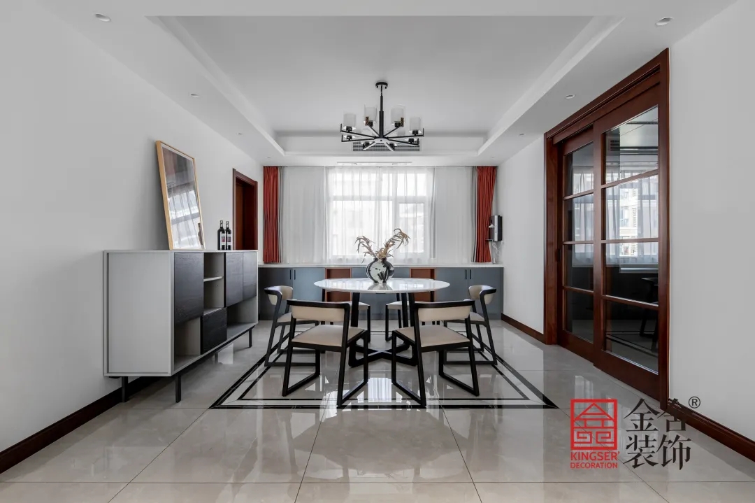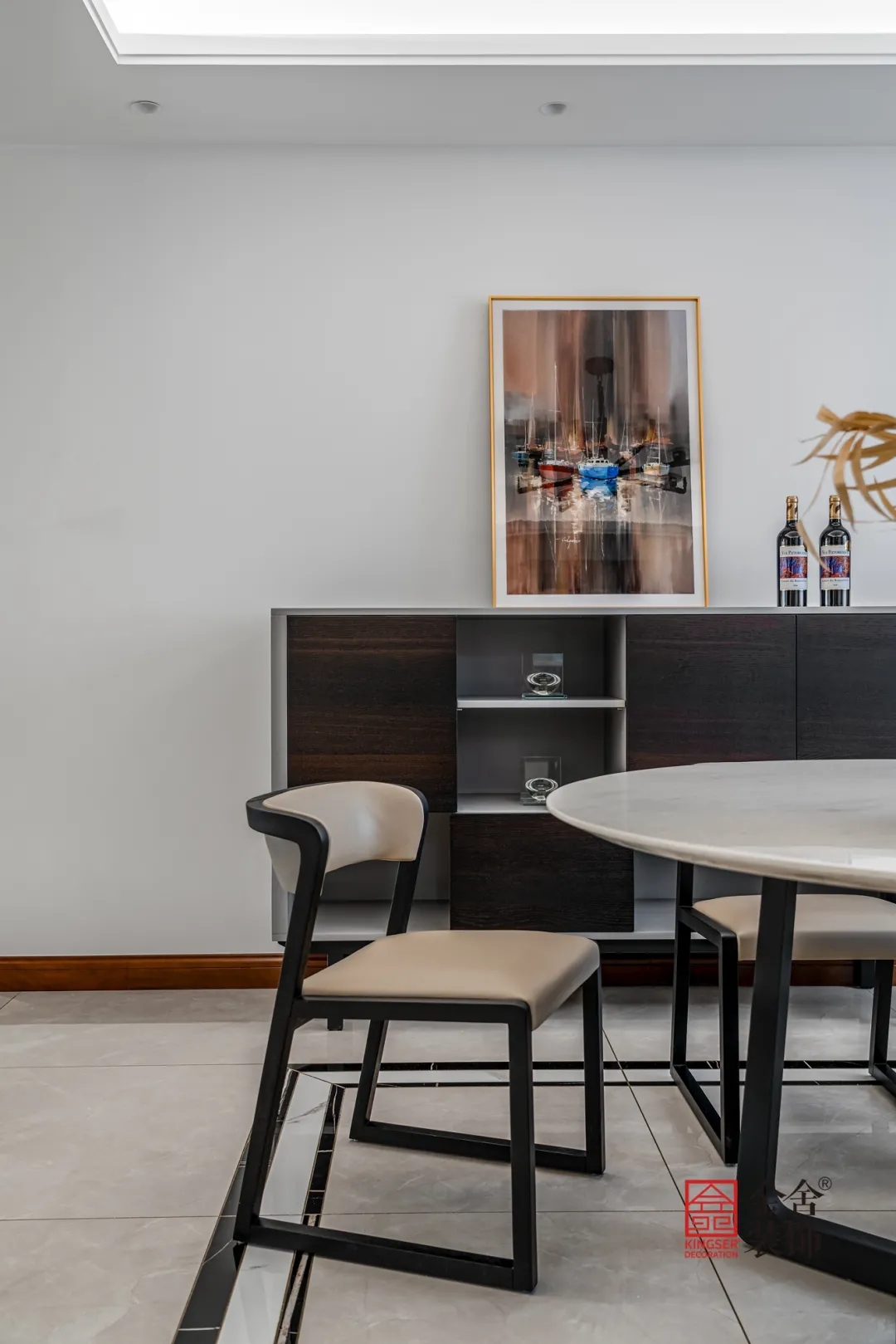 此案例為金舍裝飾-西山別墅區(qū)200平米新中式裝修實(shí)景。兩種不同的顏色,就好似在白樺林間中起舞,高雅而脫俗,唯美而含蓄,空間的交疊下,熟悉的旋律中,踏出每一步都在顏色的幻想中翩然舞動(dòng)。
