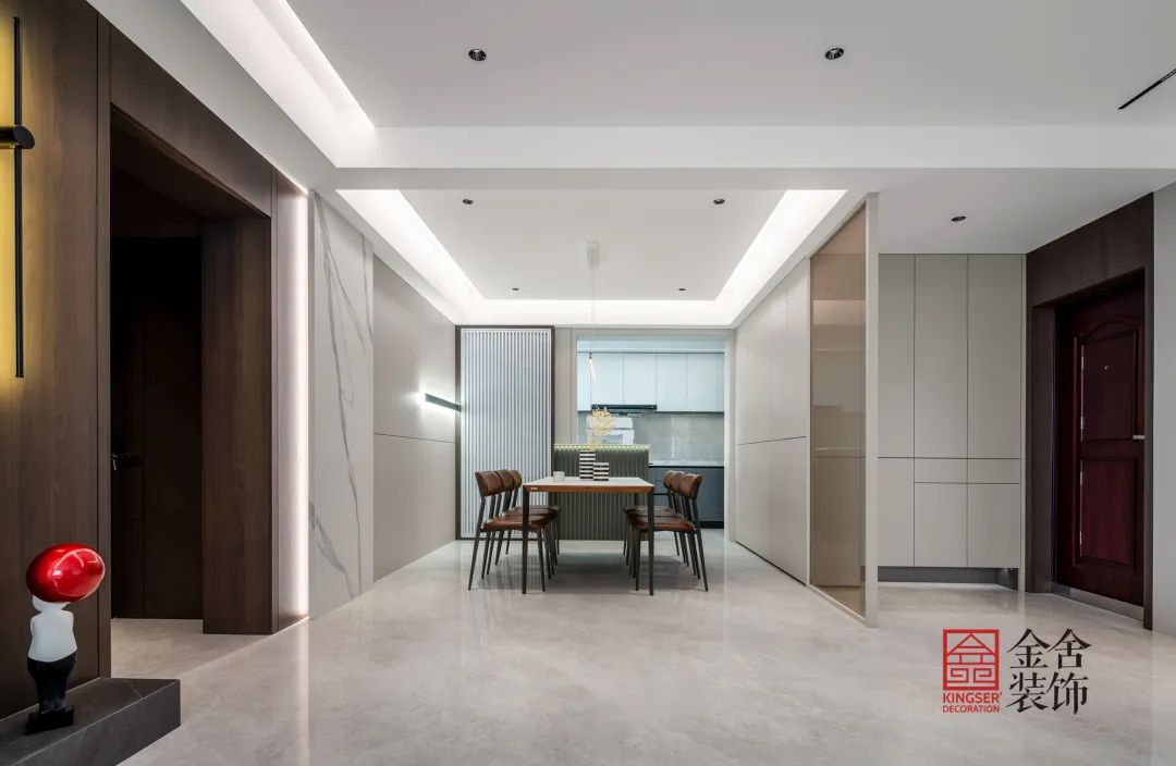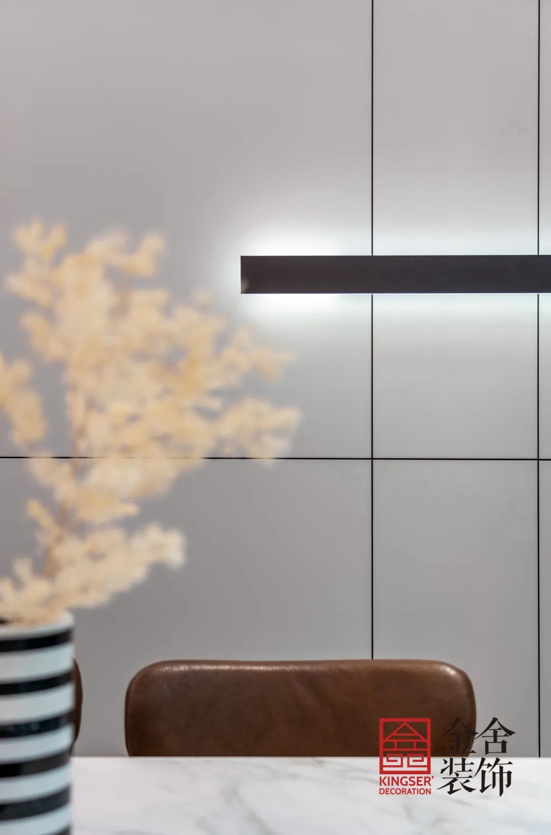 餐廳中皮質(zhì)椅子加簡約的餐桌,全墻的硬包和巖板也同時在餐廳中出現(xiàn)了,精致而典雅的生活中正是需要人們對于時尚的推崇。