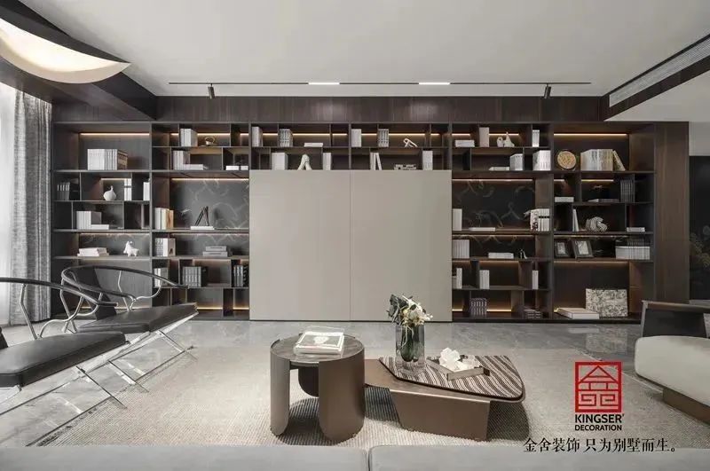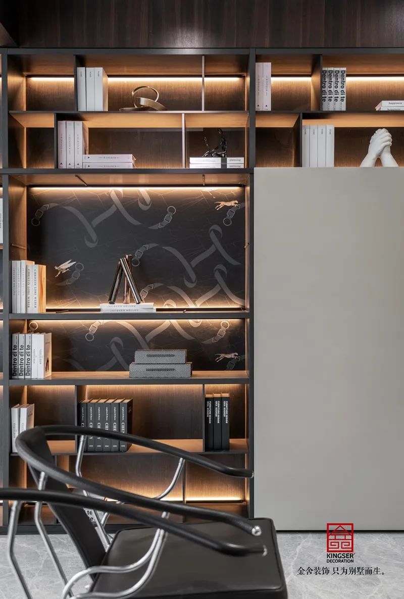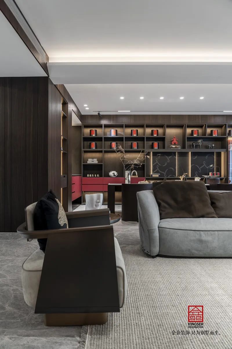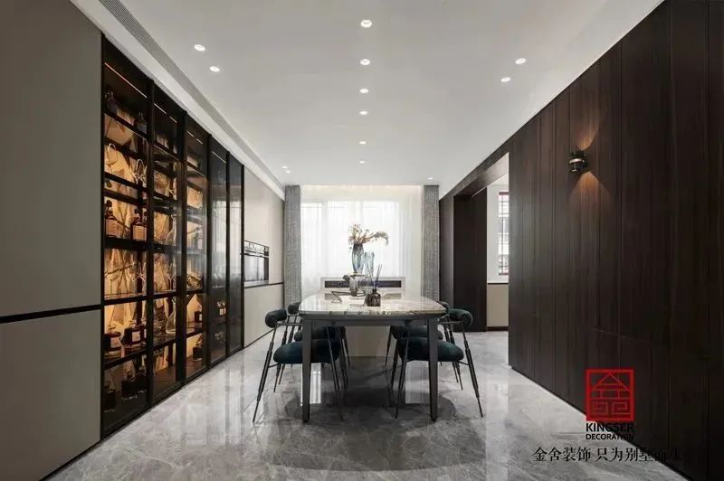 整體使用的顏色整體濃重而和諧。橫平豎直的空間線條里,質感木紋如墨色般暈染開來,木質、金屬、巖板等材質亦悄然置入,東方情韻與現(xiàn)代時尚的骨骼大膽融合,相得益彰。典雅高顏值,看得出設計師的優(yōu)秀的能力與業(yè)主的不凡品味。