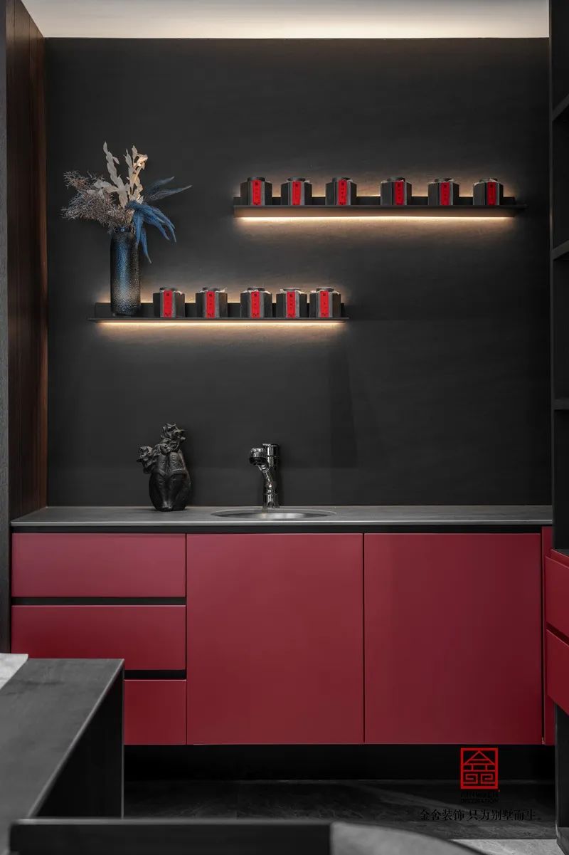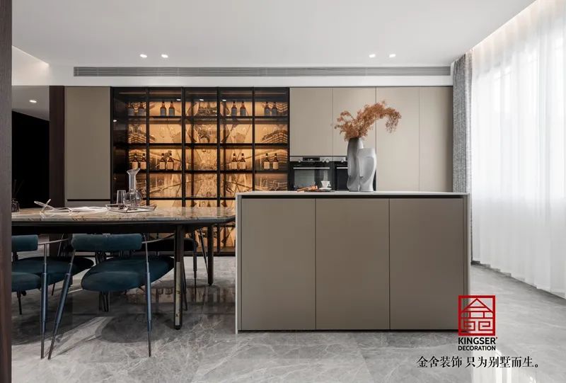 餐廚區(qū)域以現(xiàn)代工藝巧設古典場景,既能感受到一種現(xiàn)代港式的浪漫,又似乎能看到一種文化的傳承,每一個細節(jié)無處不顯露精致雅致,又無處不蘊藏現(xiàn)代蹤影。