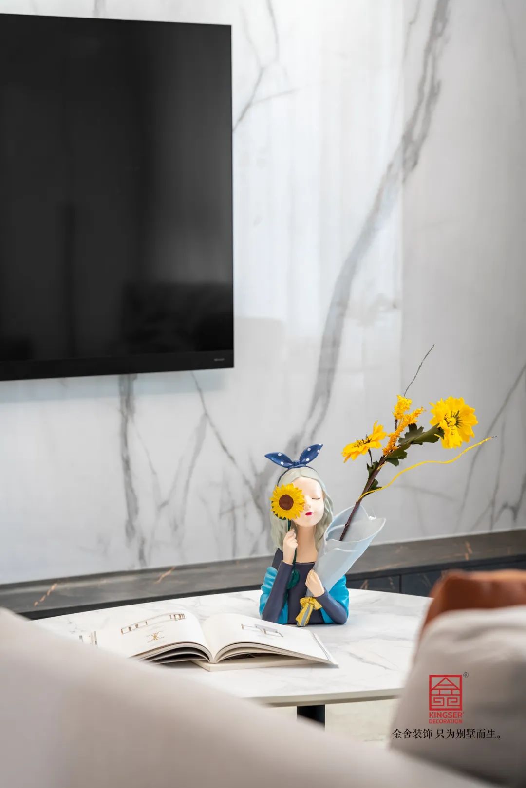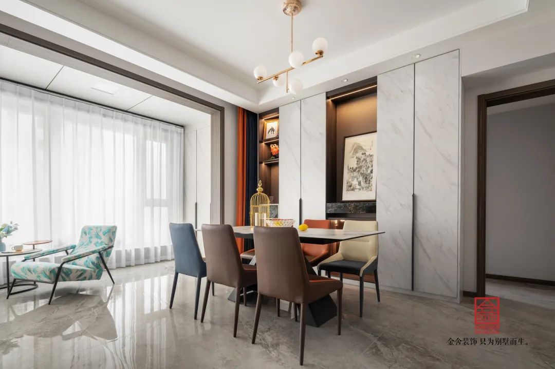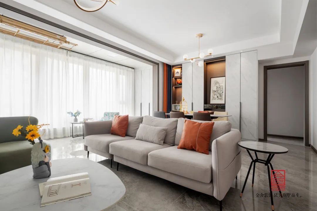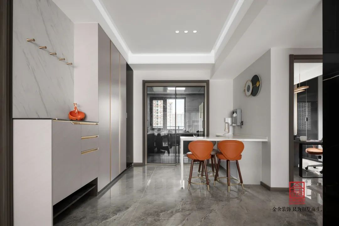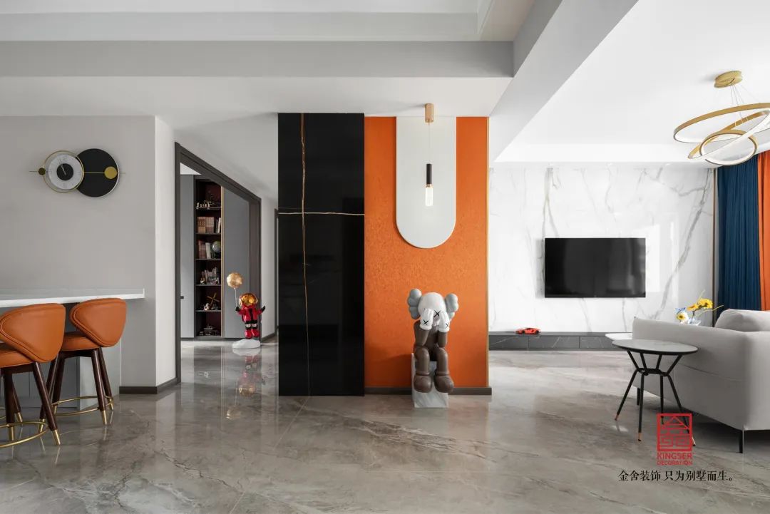 此案例為金舍裝飾-遠(yuǎn)洋晟庭190平米現(xiàn)代輕奢風(fēng)格裝修實(shí)景案例。設(shè)計(jì)師以鮮明熱烈的色彩與臻選的材質(zhì)碰撞出全新的空間調(diào)性,清爽的象牙白邂逅明快的落日橙,輕奢個(gè)性、溫暖雅致,讓每一個(gè)場(chǎng)景生動(dòng)而鮮活,仿若色彩的構(gòu)成的天堂,讓身處其中的人都能感受到色彩所傳遞的精神與力量。