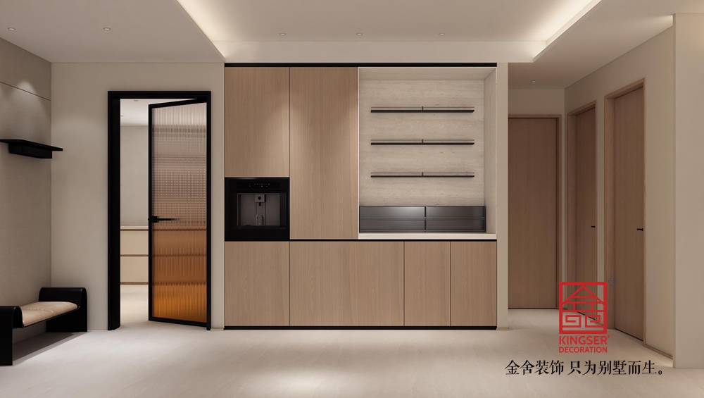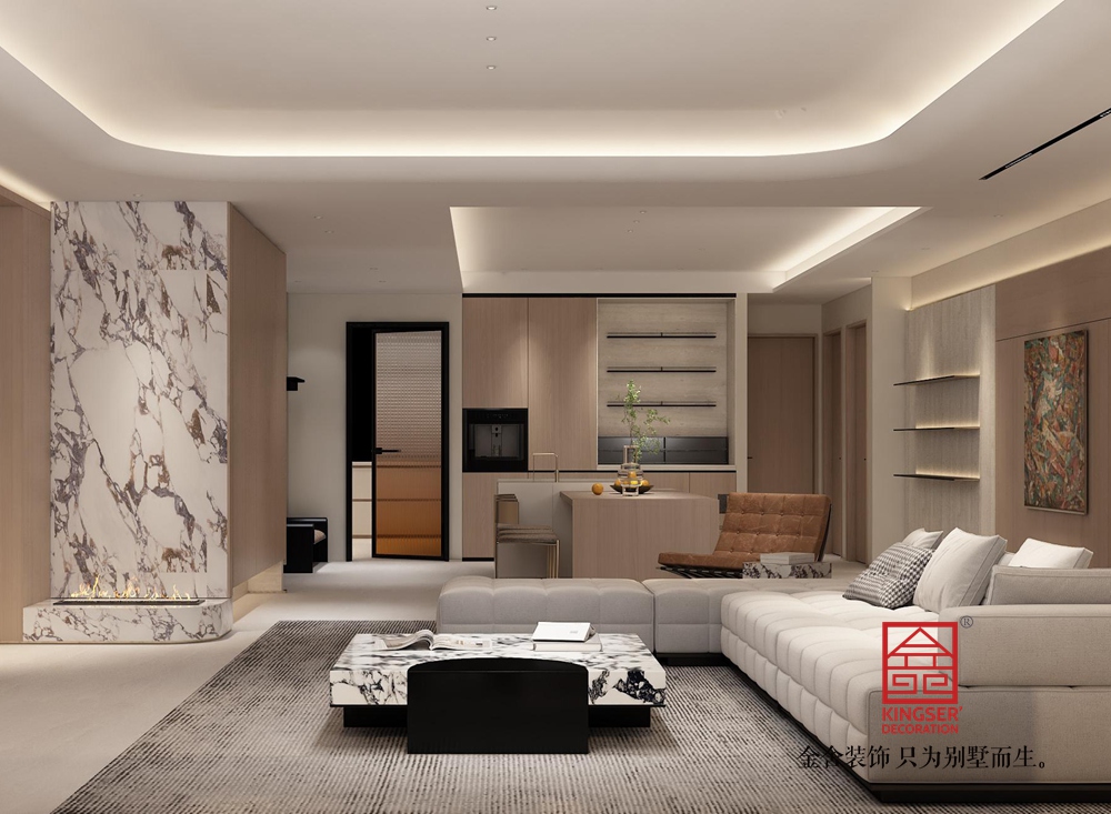 金舍裝飾-棠樾府265平米現(xiàn)代簡(jiǎn)約風(fēng)格裝修效果圖。從色彩搭配上看,我們選擇了白色沙發(fā)與黑色地毯的經(jīng)典組合。白色沙發(fā)柔和而溫馨,能夠營(yíng)造出一種寧?kù)o舒適的氛圍;而黑色地毯則穩(wěn)重而不失時(shí)尚感,與白色沙發(fā)形成了鮮明的對(duì)比,使空間更具層次感。