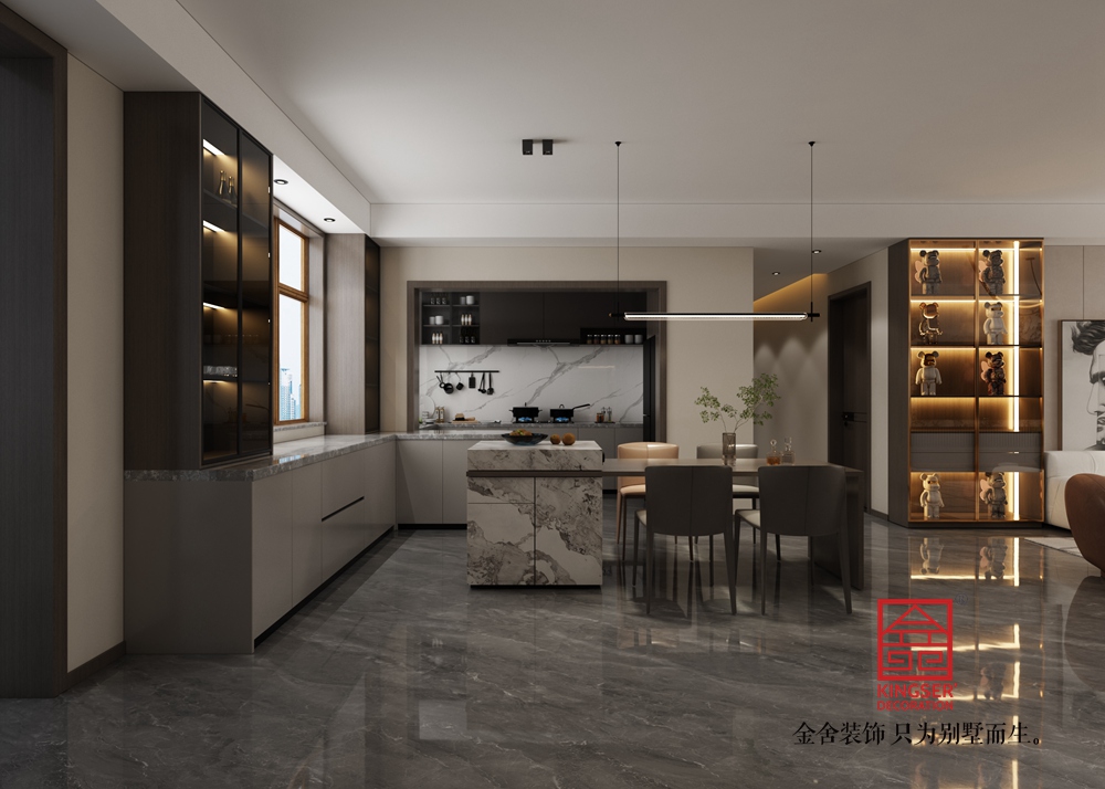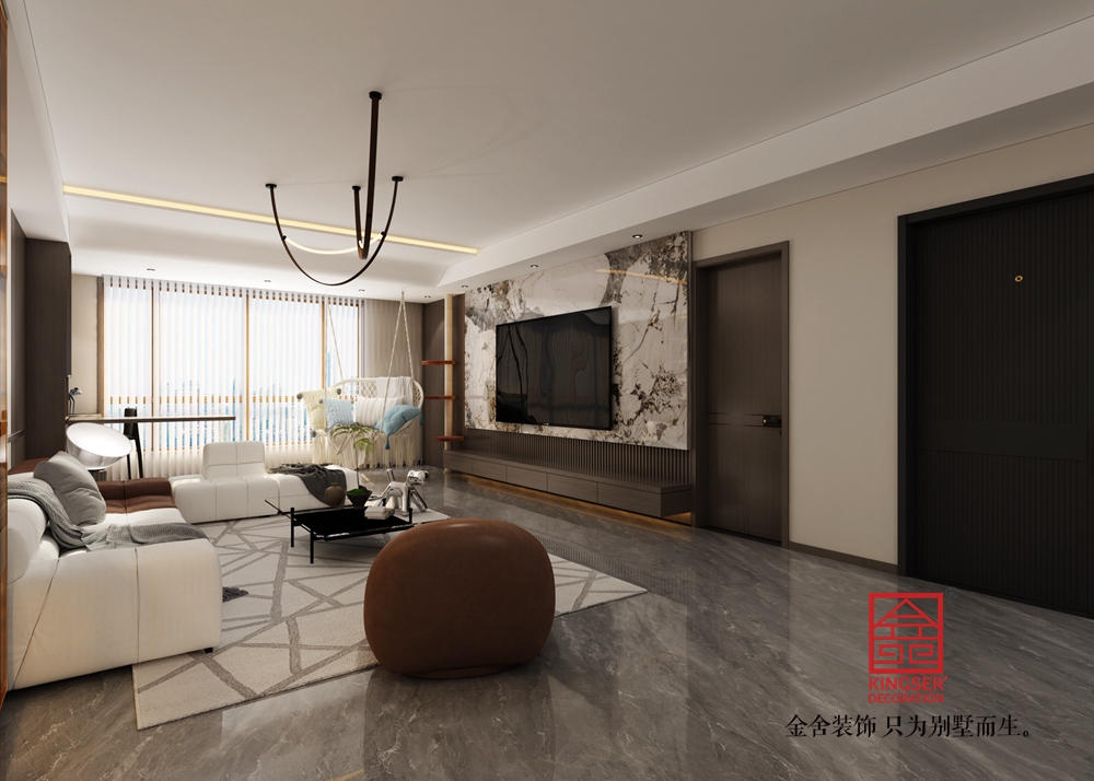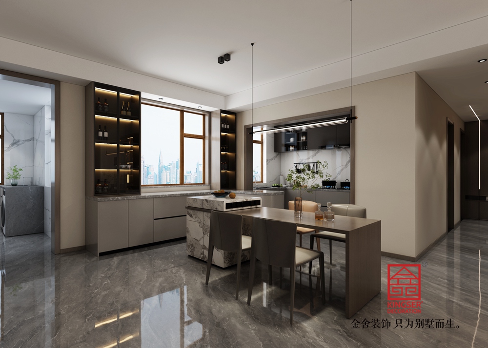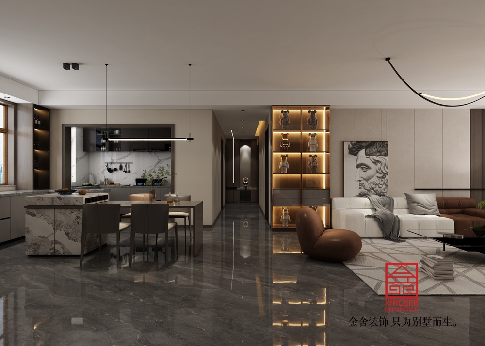 整體中性色調(diào),內(nèi)斂干凈,奢而不華高級灰色調(diào)與亮面光感相互調(diào)和營造一種靜謐優(yōu)雅的空間氛圍,