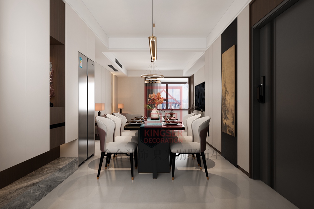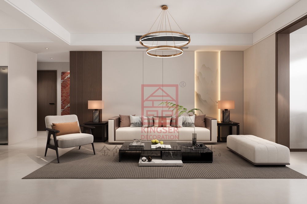 設計說明:此案例為石家莊裝修公司-云和賦112平米現(xiàn)代簡約風格裝修效果圖??蛷d整體色調以白色和灰色為主,營造出一種清新、明亮的空間感。白色沙發(fā)與灰色地毯的搭配,不僅提升了空間的亮度,還賦予了空間一種高雅而寧靜的氣質。墻上掛著的抽象藝術畫作,以紅色和棕色為點綴,為整個空間增添了一抹活力與溫暖,使得整個客廳在簡約中不失溫馨與個性。