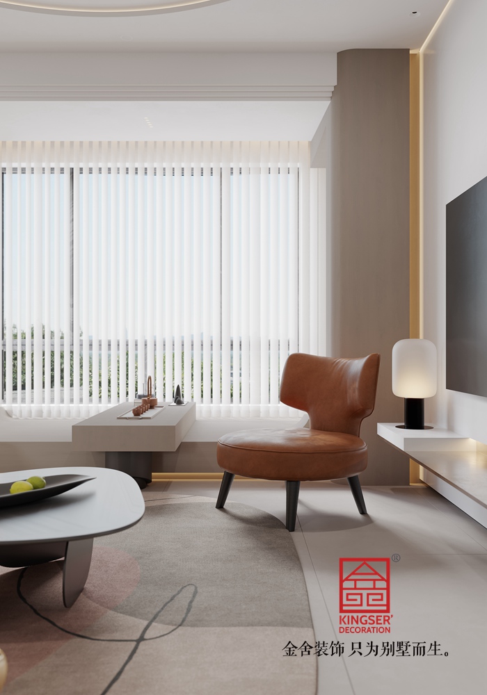 設(shè)計說明:此案例為石家莊裝修公司-國仕山130平米現(xiàn)代簡約風(fēng)格裝修效果圖。整個房間以白色和米色為主色調(diào),營造出一種清新、寧靜的氛圍。這兩種顏色不僅使空間看起來更加寬敞明亮,還能有效緩解視覺疲勞。深棕色的家具則為空間增添了一絲穩(wěn)重與質(zhì)感,與主色調(diào)形成鮮明對比,使整個空間更加立體、有層次感。