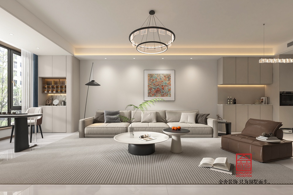 本客廳設(shè)計(jì)以現(xiàn)代簡(jiǎn)約風(fēng)格為基調(diào),旨在打造一個(gè)溫馨舒適、功能齊全的居家環(huán)境。通過巧妙的色彩搭配和家具布局,實(shí)現(xiàn)了空間的最大化利用,營(yíng)造出一種既寬敞又溫馨的居住氛圍。