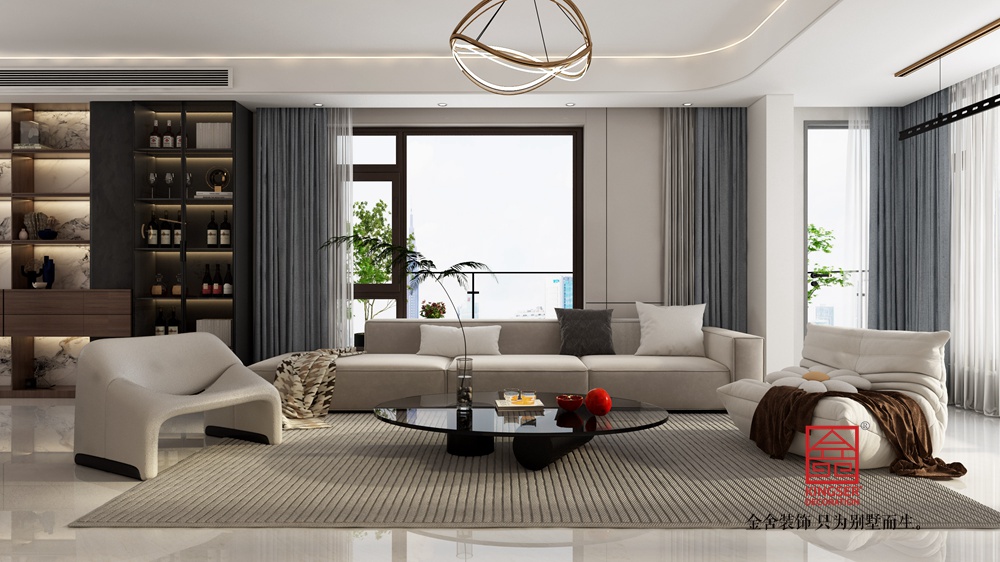 本設(shè)計(jì)以現(xiàn)代簡約風(fēng)格為核心,旨在打造一個(gè)既舒適又充滿藝術(shù)氣息的生活空間。從圖片中可以看到,客廳的布局合理,色彩搭配和諧,每一個(gè)細(xì)節(jié)都經(jīng)過精心考量。