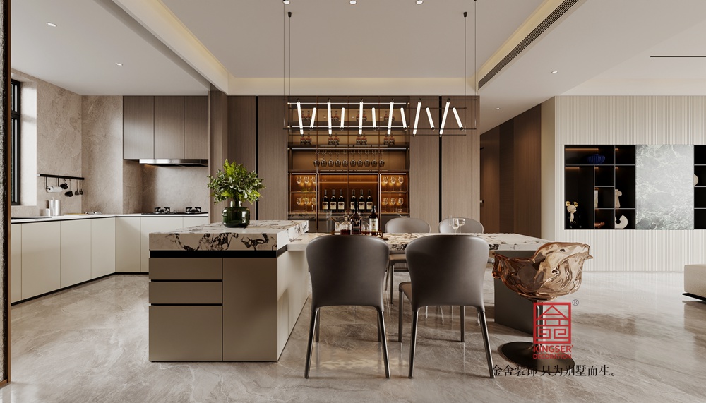 此案例為金舍裝飾-龍湖天奕230平米意式輕奢風(fēng)格裝修效果圖。本設(shè)計(jì)方案客廳設(shè)計(jì)以現(xiàn)代簡(jiǎn)約為核心,追求空間的開闊與通透。淺米色為主色調(diào),搭配簡(jiǎn)潔的硬裝線條,營(yíng)造溫馨、大氣氛圍。