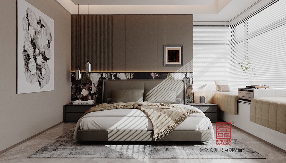 大面積落地窗引入自然光線與戶外景致,打破室內(nèi)外界限。定制收納墻兼具展示與實(shí)用,石材、金屬等材質(zhì)點(diǎn)綴,提升質(zhì)感。