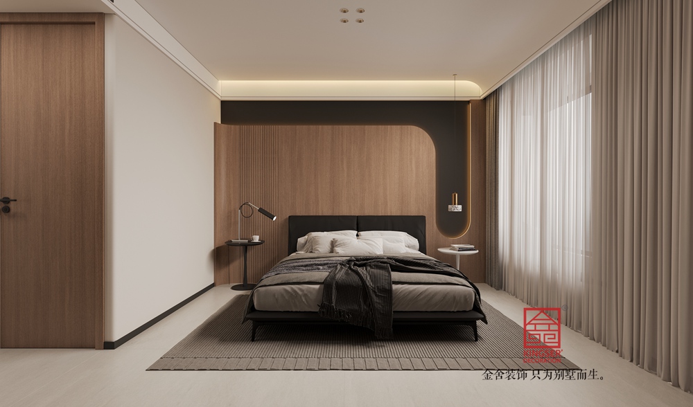 色彩運(yùn)用低飽和色調(diào),白、灰、木色為主,搭配黑色家具,簡(jiǎn)潔沉穩(wěn)又顯溫馨。燈光設(shè)計(jì)暗藏心思,線性燈帶勾勒輪廓,點(diǎn)光源聚焦重點(diǎn),營(yíng)造層次氛圍。