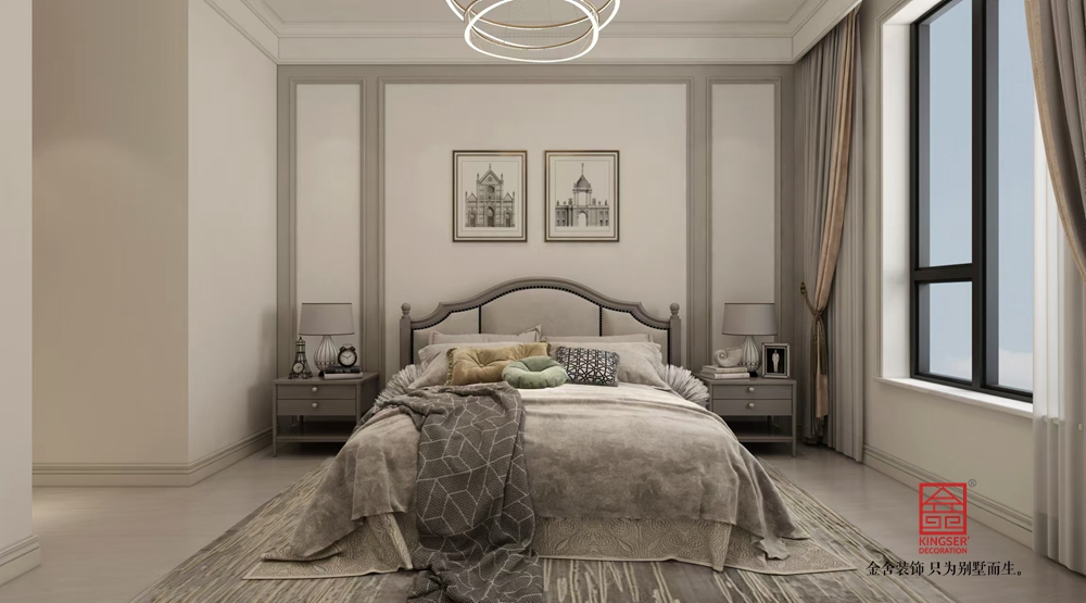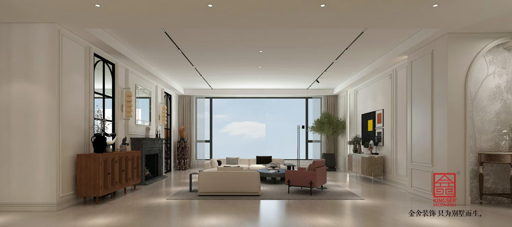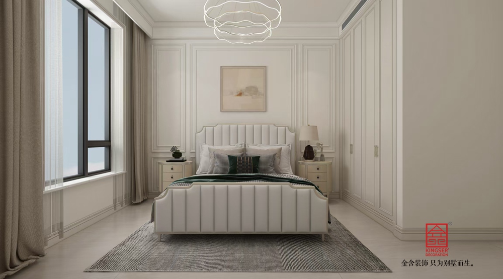 空間布局上,開放式格局將客廳、餐廳流暢銜接,增強互動性與通透感。以白色為主色調(diào),搭配淺色地面,營造明亮、純凈氛圍。通過精致的石膏線、護墻板,勾勒空間層次,展現(xiàn)法式的優(yōu)雅精致,又融入簡約線條,貼合現(xiàn)代審美。