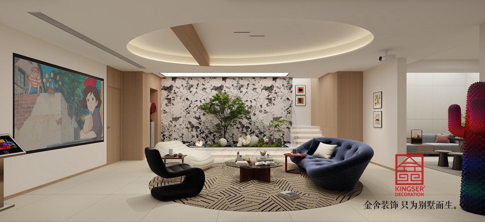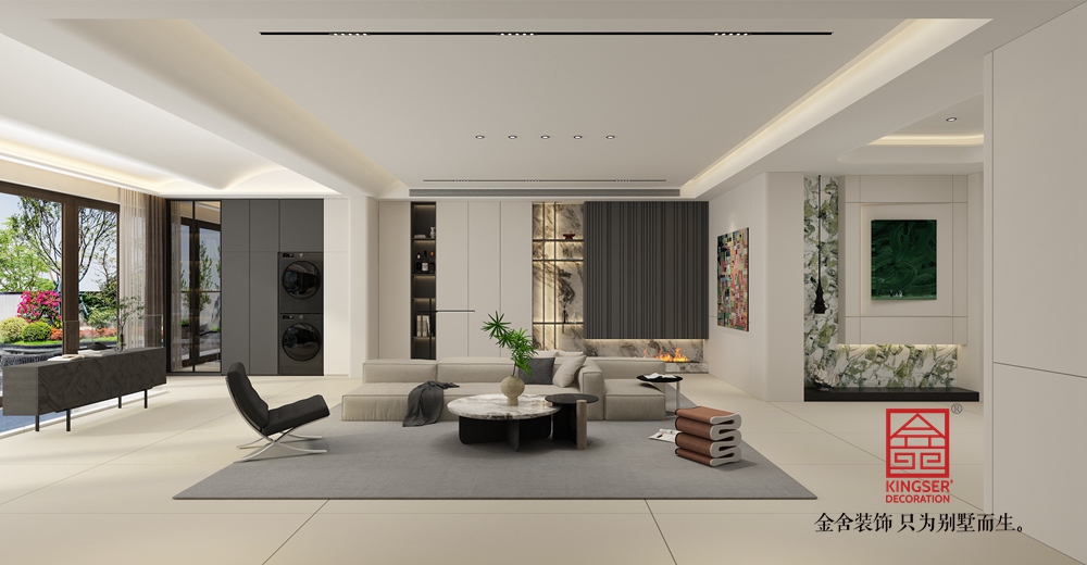 此案例為石家莊別墅裝修-嘉禾名著500平米意式極簡(jiǎn)風(fēng)格裝修效果圖。本客廳設(shè)計(jì)秉持現(xiàn)代簡(jiǎn)約理念,致力于打造大氣、舒適且具藝術(shù)感的空間。