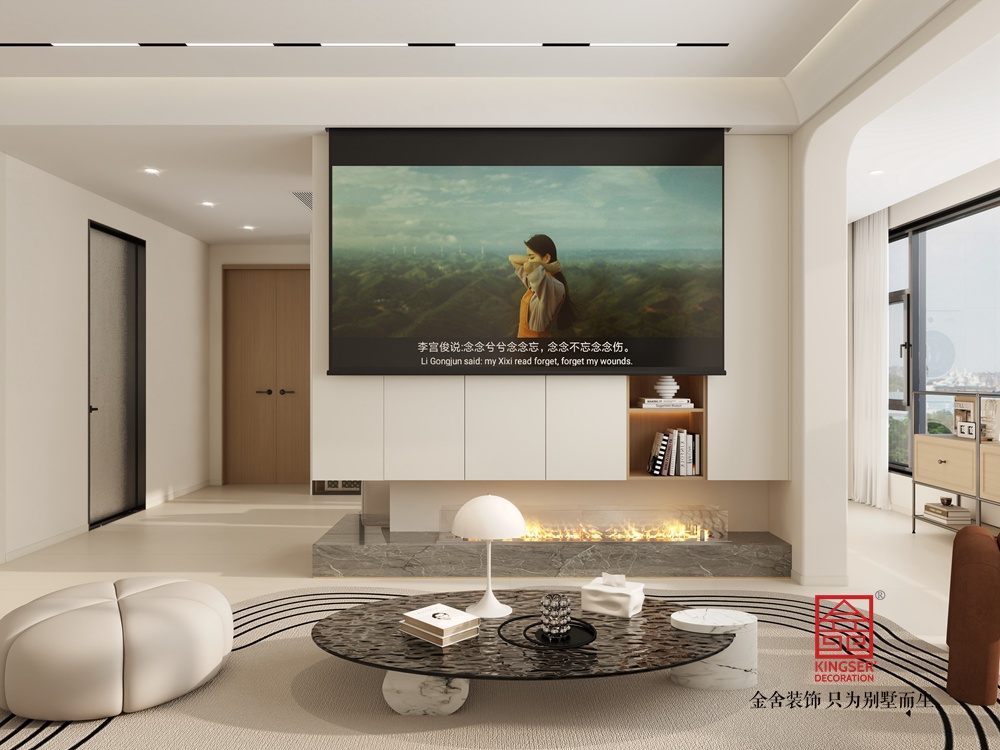 此案例為石家莊裝修公司-高薪苑117平米奶油風(fēng)裝修效果圖。本客廳設(shè)計(jì)秉持現(xiàn)代簡約風(fēng)格,以純凈的白色為主色調(diào),營造出明亮通透的空間氛圍。墻面采用簡潔的線條設(shè)計(jì),搭配局部木質(zhì)紋理裝飾,增添自然溫馨感。家具選擇上,弧形沙發(fā)柔和了空間棱角,棕色單人椅與毛毯形成色彩呼應(yīng),為空間注入溫暖質(zhì)感。玻璃茶幾精致通透,搭配造型獨(dú)特的燈具,提升了空間的藝術(shù)感。地面的曲線地毯打破了純色的單調(diào),與墻上的抽象藝術(shù)畫相呼應(yīng),豐富了視覺層次,整體打造出一個(gè)舒適、時(shí)尚且富有藝術(shù)氣息的居住空間。