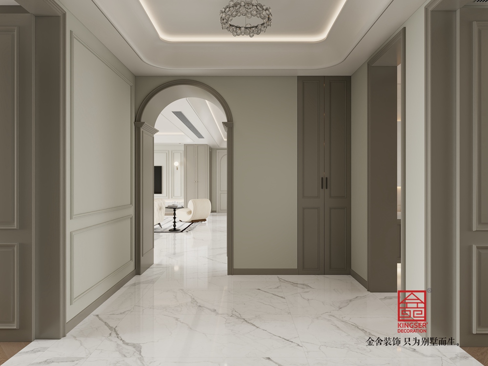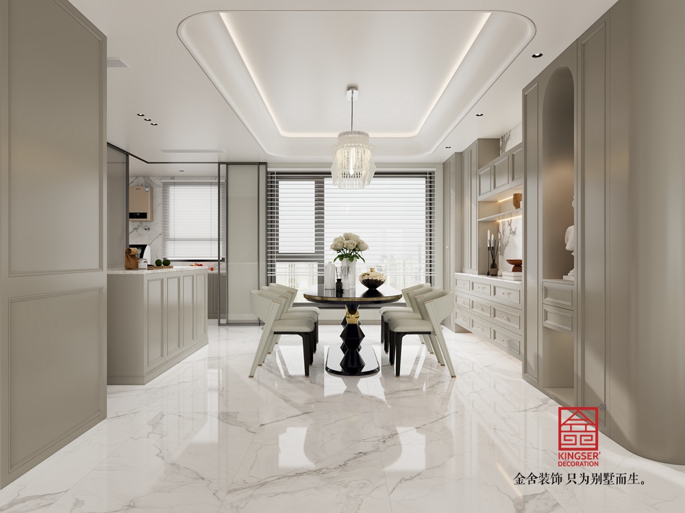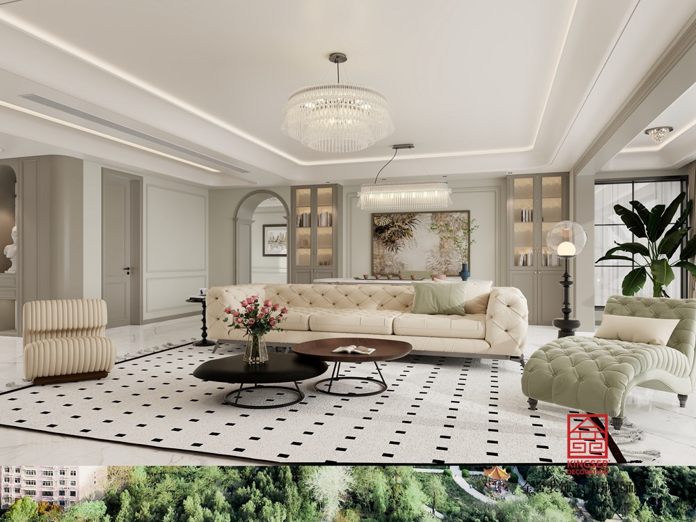 本客廳設(shè)計(jì)融合了現(xiàn)代輕奢與優(yōu)雅格調(diào)。以柔和的淺色調(diào)為主基底,營(yíng)造出溫潤(rùn)雅致的空間氛圍。精致的水晶吊燈與線(xiàn)條流暢的家具相得益彰,彰顯出輕奢質(zhì)感。