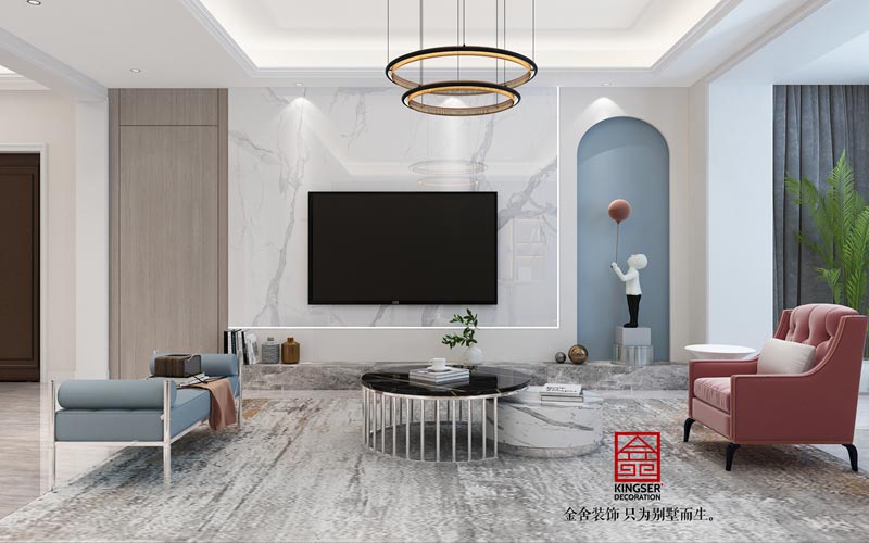 設(shè)計說明:此案為金舍裝飾-瀚林甲第167平米美式風(fēng)格裝修。一位獨立自主的80后女性,有自己的主張、自己的生活方式,同樣也希望有更加自我的居住環(huán)境,那是一個簡潔清新,且富有質(zhì)感的空間,美式輕奢恰好符合了這一點,美式風(fēng)格的獨特浪漫情懷、優(yōu)雅浪漫,房間里處處凝結(jié)著自由不羈的生活情調(diào)。冷色系的藍(lán)調(diào)和暖色系的黃調(diào)相互碰撞,給了這個家不一樣的精彩,每個細(xì)節(jié)都充滿了對美好生活甜蜜幸福的期望
