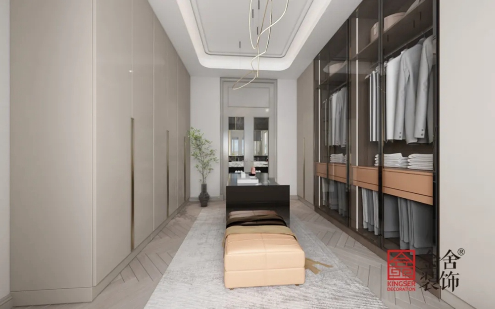 衣帽間的設(shè)計(jì)充分的考慮到空間的運(yùn)用,基本沒有過多的裝飾,將儲(chǔ)藏功能在衣帽間中充分展示出來,在保證使用功能的同時(shí),保證了空間的美觀。
