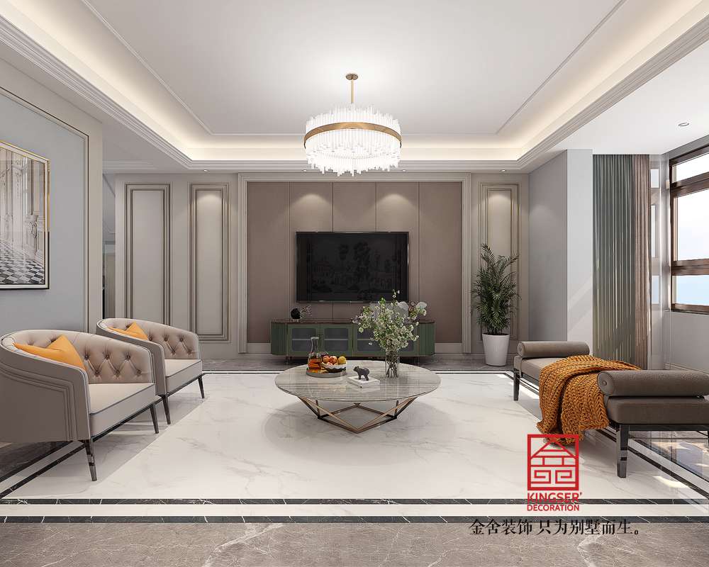 此案例為金舍裝飾-大者別墅350平米簡美風(fēng)格裝修案例。簡美風(fēng)格,簡單來說就是美式古典風(fēng)格的延續(xù),它最大的特點就是將各種裝修元素(設(shè)計、色彩、照明、原材料等)簡化到最小的程度,但是簡美風(fēng)格對于材料的質(zhì)感需求特別的高。簡美風(fēng)格大受歡迎還有一個重要的原因就是它整體的風(fēng)格特別簡約大氣,并沒有過多復(fù)雜的空間布局,設(shè)計也都很簡練,不會讓人覺得繁瑣