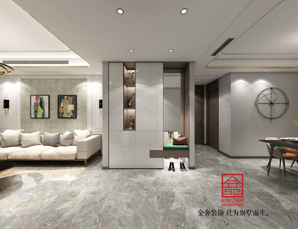 此案例為金舍裝飾-融創(chuàng)中心155平米港式輕奢風(fēng)格裝修效果圖。融創(chuàng)中心8號地155戶型