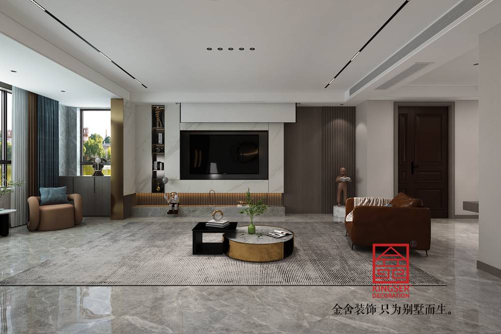 此案例為金舍裝飾-東南智匯城191平米現(xiàn)代輕奢裝修案例。本案整體為現(xiàn)代輕奢風格,整體設計追求空間平衡,對設計語言精心構(gòu)建,在獨特的現(xiàn)代理念中力求生活的本源:知性,優(yōu)雅,具有人文氣息。為整個設計帶來輕奢視感。色彩上,用高級灰作為主色調(diào),奠定了空間沉穩(wěn)的底色。與皮質(zhì),金屬,巖板,木材等不同材質(zhì)的結(jié)合,既保持著整齊的視感,又將高級氣質(zhì)凸顯。