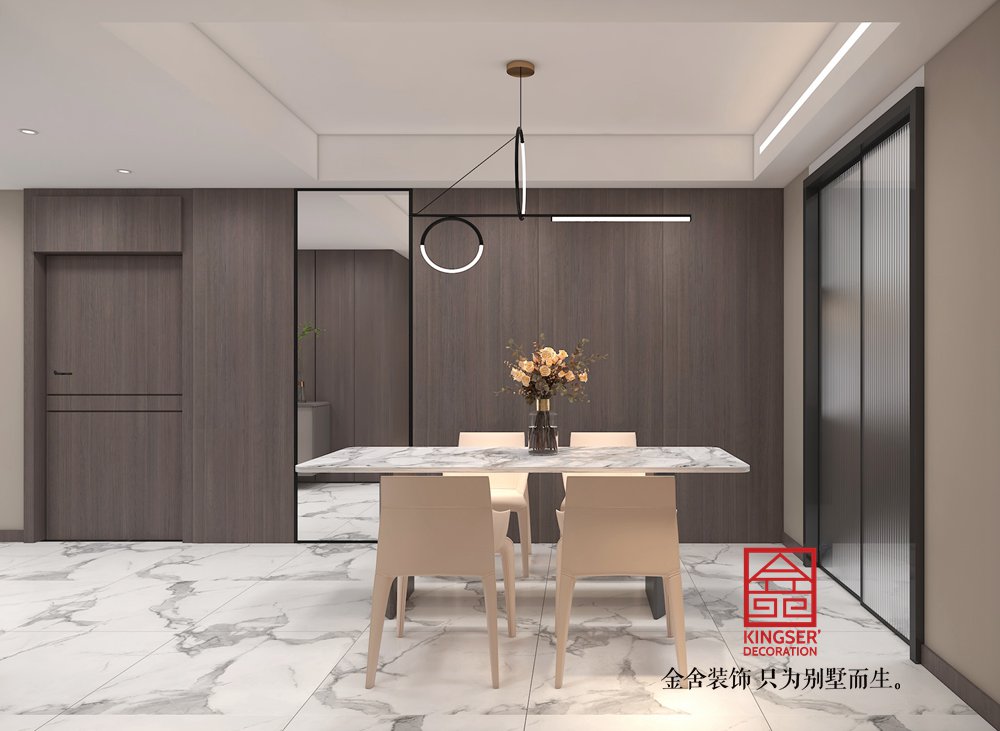 設(shè)計(jì)說(shuō)明:此案例為金舍裝飾—德賢華府175平米現(xiàn)代輕奢風(fēng)格裝修效果圖。進(jìn)入空間中處便能感受到整體設(shè)計(jì)中溫婉的氛圍,顏值與觸感融合,共鑒細(xì)節(jié)匠心。西班牙巖板結(jié)合縱向線條分割,溫潤(rùn)的木質(zhì)與柔和的面料優(yōu)雅過(guò)渡增加空間的流動(dòng)性。用功能將生活場(chǎng)景進(jìn)行劃分:家庭休閑、社交會(huì)客、親子互動(dòng)、悅享生活、文娛健身、悅享時(shí)光。從聚餐到游戲,從運(yùn)動(dòng)到讀書(shū),有人間煙火,亦有詩(shī)和遠(yuǎn)方。理性的堅(jiān)持與感性的追求并存,希望將物質(zhì)需求轉(zhuǎn)化為精神的豐富。他們認(rèn)為,真正理想的房子,不僅僅是一系列空間,更是創(chuàng)造一種國(guó)際前沿的生活方式,是專(zhuān)為自己和家人量身定制的理想“家”的所在。