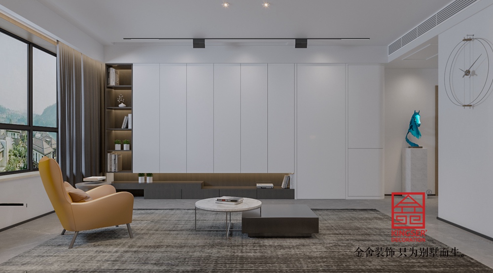 設(shè)計(jì)理念:此案例為金舍裝飾-融創(chuàng)江坪園160平米現(xiàn)代極簡(jiǎn)風(fēng)格裝修效果圖。該戶型業(yè)主是一對(duì)年輕夫妻,年齡三十多歲。追求時(shí)尚喜歡現(xiàn)代無(wú)拘束的生活方式。要求儲(chǔ)物空間要多,女主人衣服鞋帽比較多需要一間衣帽間。男主人要求有一間獨(dú)立書房,晚上會(huì)經(jīng)常加班不能打擾對(duì)方休息。還要有一間兒童房,目前可以做客房,未來(lái)要迎接小寶寶的到來(lái)。