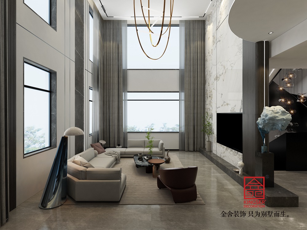 設(shè)計(jì)說明:此案例為金舍裝飾-井陘自建別墅1000平米意式極簡(jiǎn)風(fēng)格裝修效果圖。極簡(jiǎn)的內(nèi)涵并非傳統(tǒng)意義上的簡(jiǎn)單質(zhì)樸,而是將一種生活方式、細(xì)節(jié)處理、風(fēng)格詮釋、個(gè)人需求融入到設(shè)計(jì)理念當(dāng)中,從原材料、色彩、裝飾簡(jiǎn)化,但是簡(jiǎn)約而不簡(jiǎn)單,對(duì)于材質(zhì)的質(zhì)感、匠人技藝需要更高一層的把控。以“簡(jiǎn)”為魂,以“用”為本。在極簡(jiǎn)空間布局里,“極簡(jiǎn)+實(shí)用”的理念延續(xù),在整個(gè)空間里,看不到多余元素的堆砌,只用簡(jiǎn)潔利落的幾何線條,詮釋意式風(fēng)格的硬朗外觀。