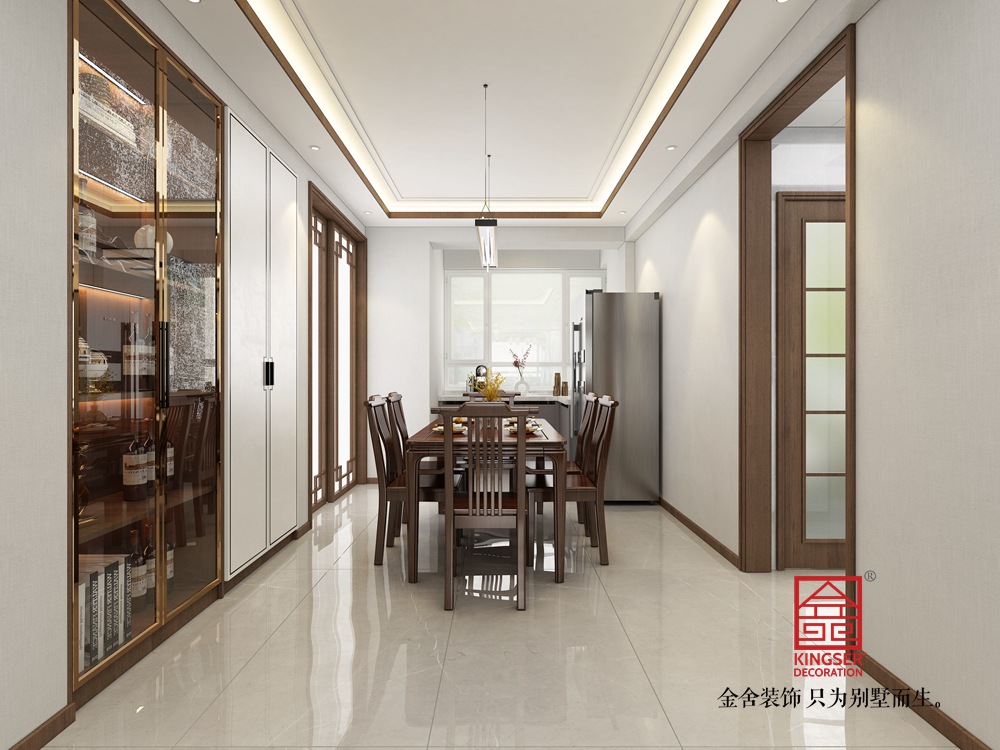 設(shè)計(jì)說明:此案例為金舍裝飾-平山水悅龍庭140平米新中式風(fēng)格裝修效果圖。新中式風(fēng)格非常講究空間的層次感,在需要隔絕視線的地方,則使用中式的屏風(fēng)或窗欞、中式木門、工藝隔斷、簡(jiǎn)約化的中式“博古架”,通過這種新的分隔方式,單元式住宅就展現(xiàn)出中式家居的層次之美。再以一些簡(jiǎn)約的造型為基礎(chǔ),添加了中式元素,使整體空間感覺更加豐富,大而不空、厚而不重,有格調(diào)又不顯壓抑