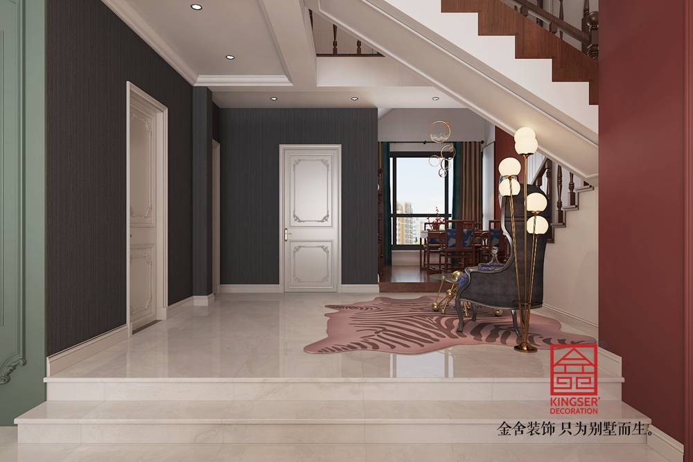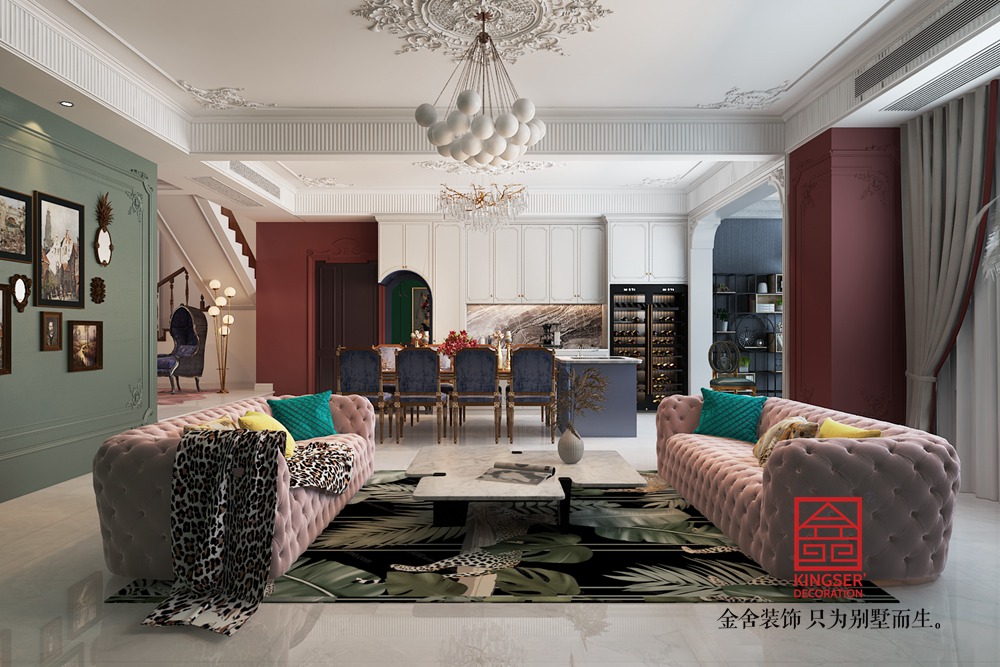 設計師:曹小雨 設計說明:本案為業(yè)主自建220平會所,主要用來招待朋友,休閑娛樂。設計采用大膽的色彩碰撞,打造特立獨行的個性和生活方式。白色、墨綠、暗紅是歐式風格中常見的主色調少量藍色糅合使色彩看起來明亮、大方使整個空間給人開放、寬容的非凡氣度讓人絲毫不顯局促。