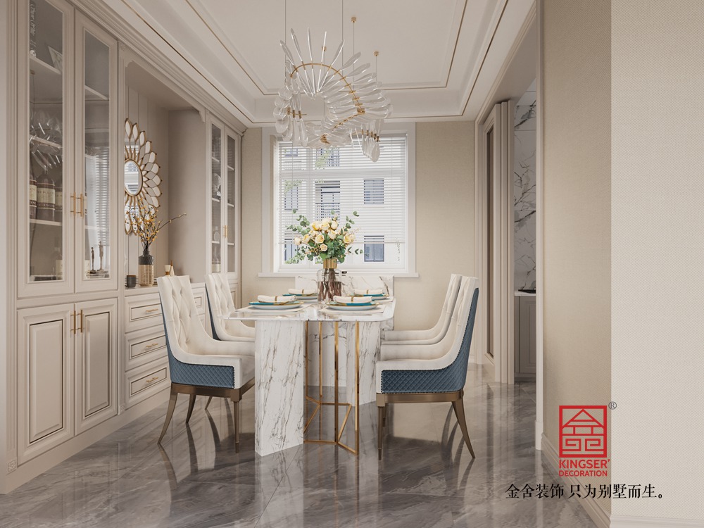 當(dāng)前位置: 首頁 > 裝修案例 > 靈感之源 > 寶晟蘭庭150平米現(xiàn)代輕奢風(fēng)格裝修-餐廳