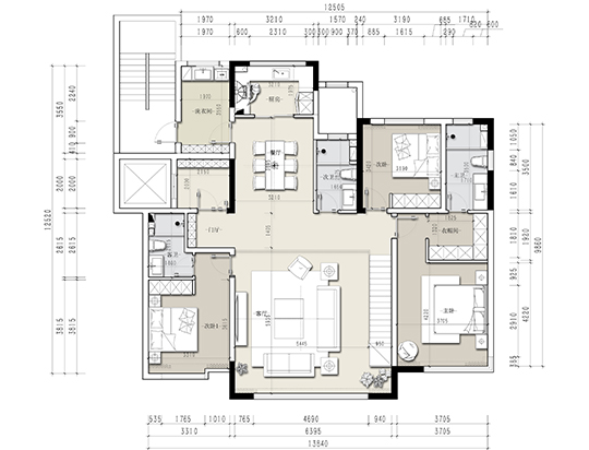 項(xiàng)目面積:165㎡ + 58㎡風(fēng)格:現(xiàn)代輕奢戶型剖析