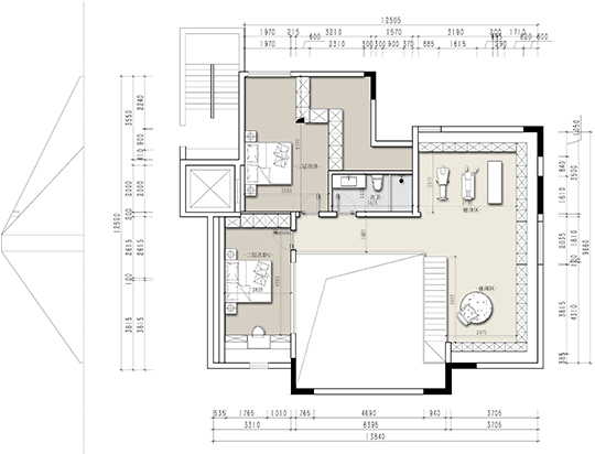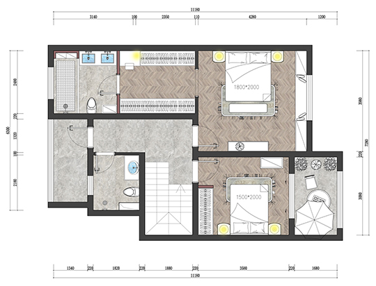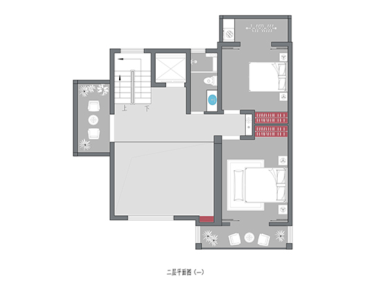 西側(cè)作為臥室,也加強(qiáng)了私密性。