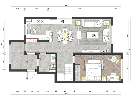客廳空間較小,占位比較尷尬,剩余空間窄長。