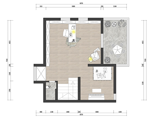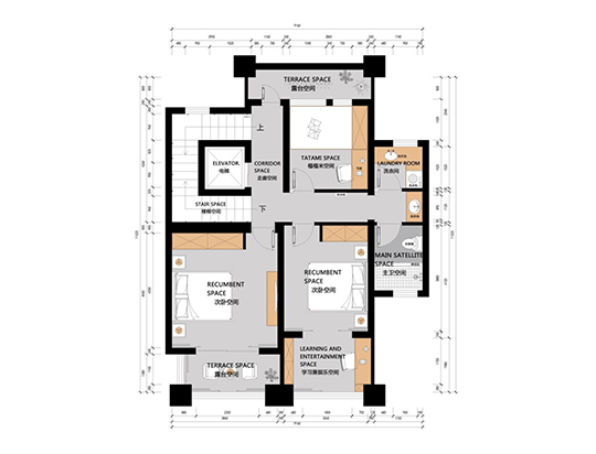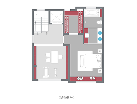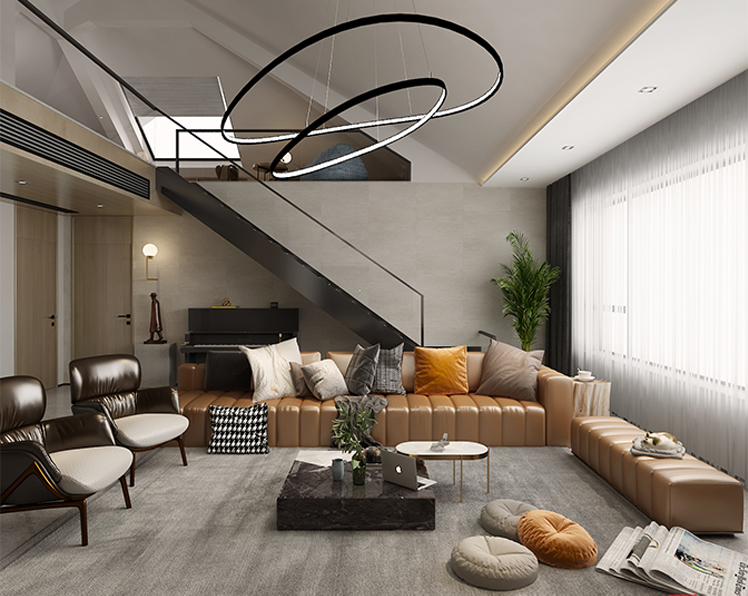 閣樓東側(cè)作為一個(gè)開敞的休閑娛樂空間,增加家庭互動(dòng)。