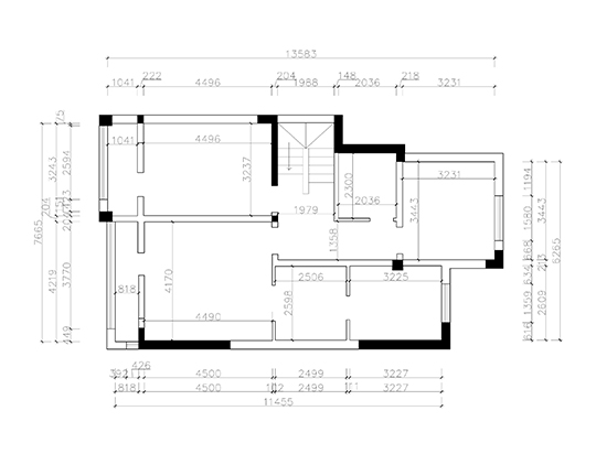 劃分原始門廳為兩個(gè)獨(dú)立空間,一個(gè)為獨(dú)立門廳