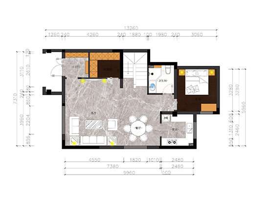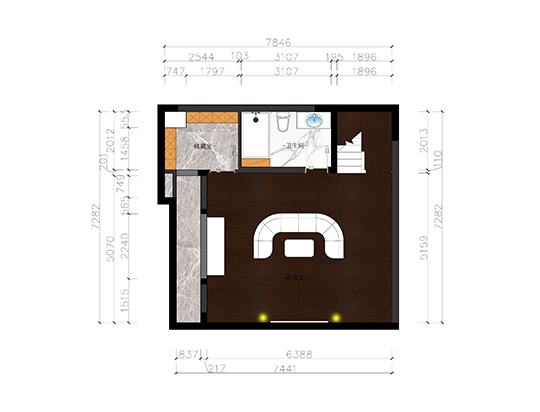 增大客廳感官上的空間擴(kuò)大化豪華套間,區(qū)域劃分明確,