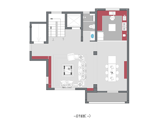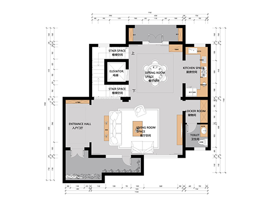 將玄關(guān)走廊,客廳與餐廳相連弱化空間劃分,